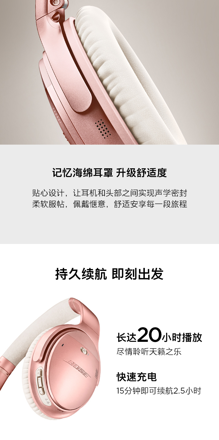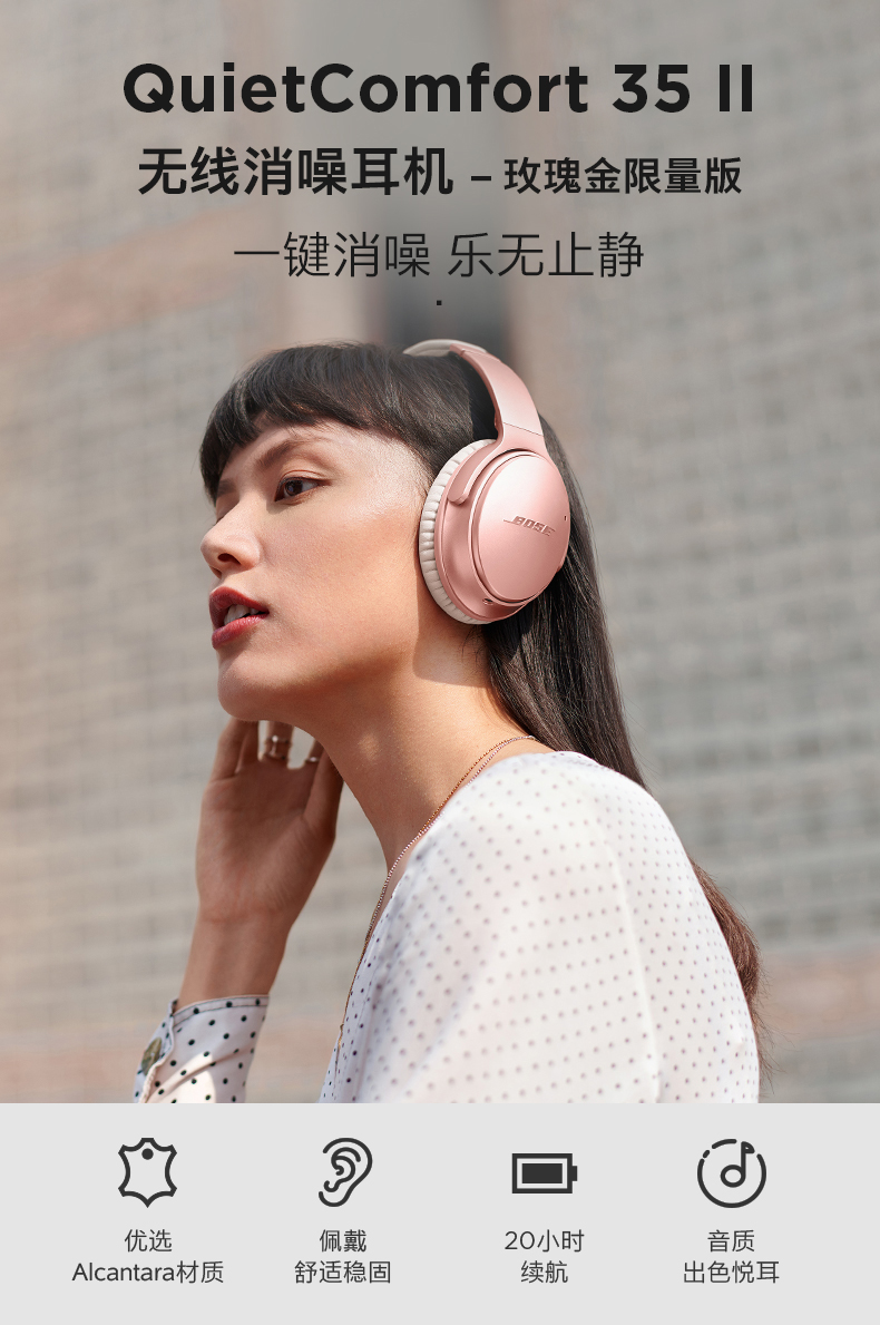 Bose QuietComfort 35 II 无线消噪耳机 – 玫瑰金限量版 QC35二代头戴式蓝牙耳麦 降噪耳机