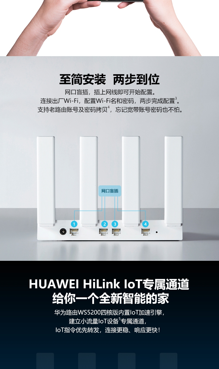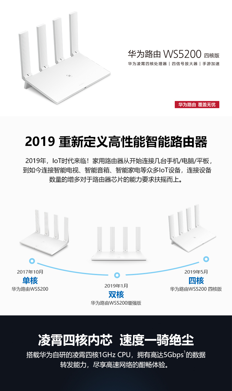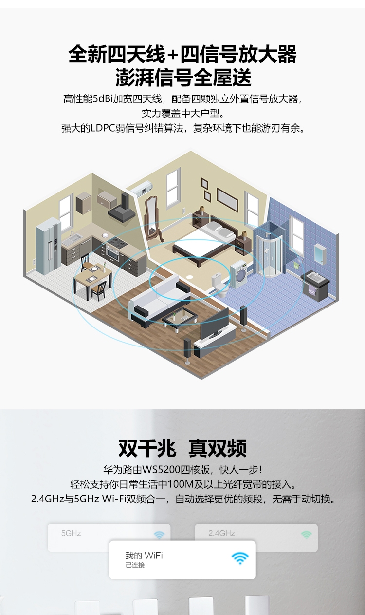 华为 WS5200 四核版 凌霄四核CPU 5G双频双千兆智能路由器